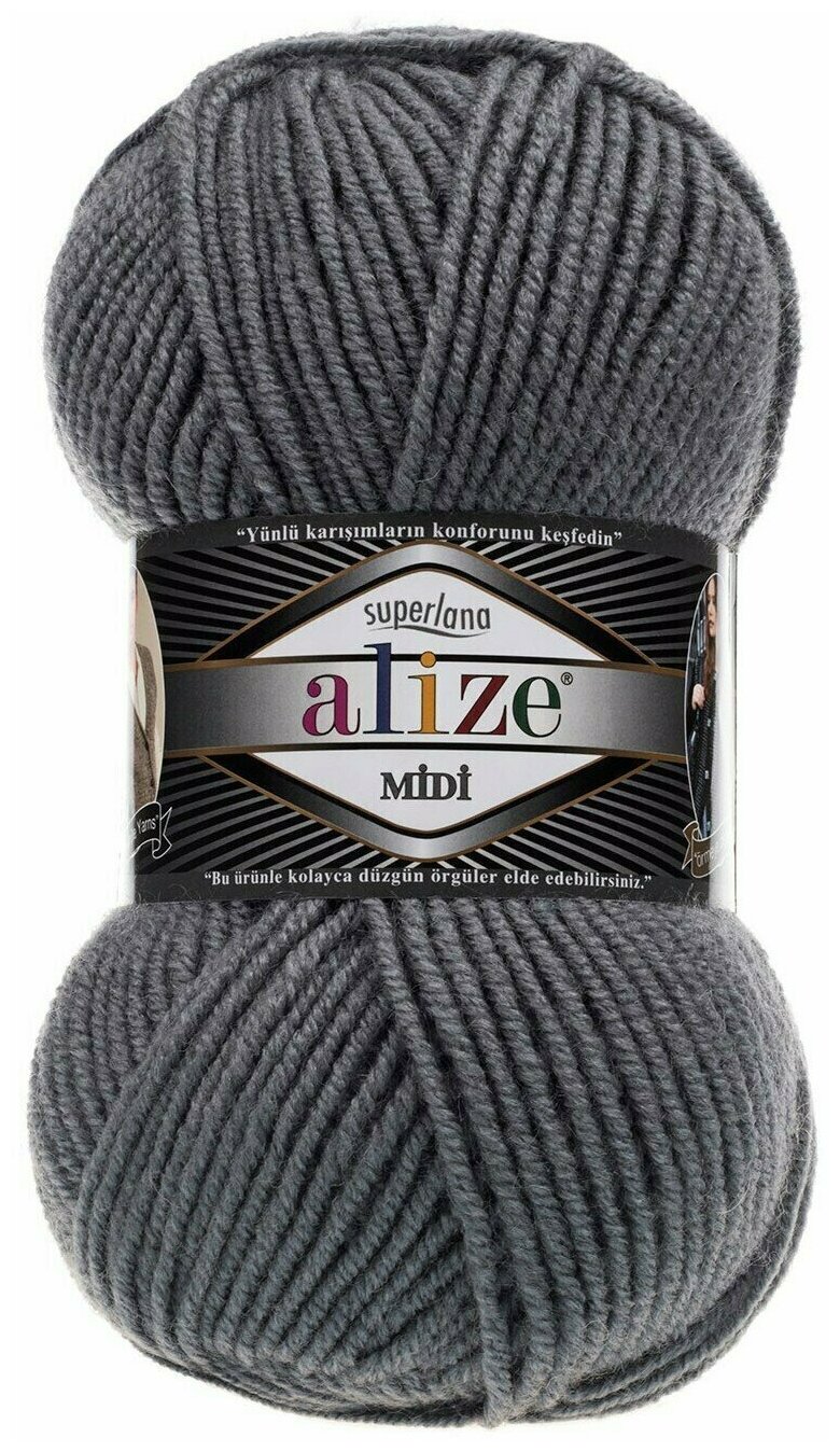 Пряжа ALIZE SUPERLANA MIDI, серый - 87, 25% шерсть, 75% акрил, 5 мотков, 100 г, 170 м.