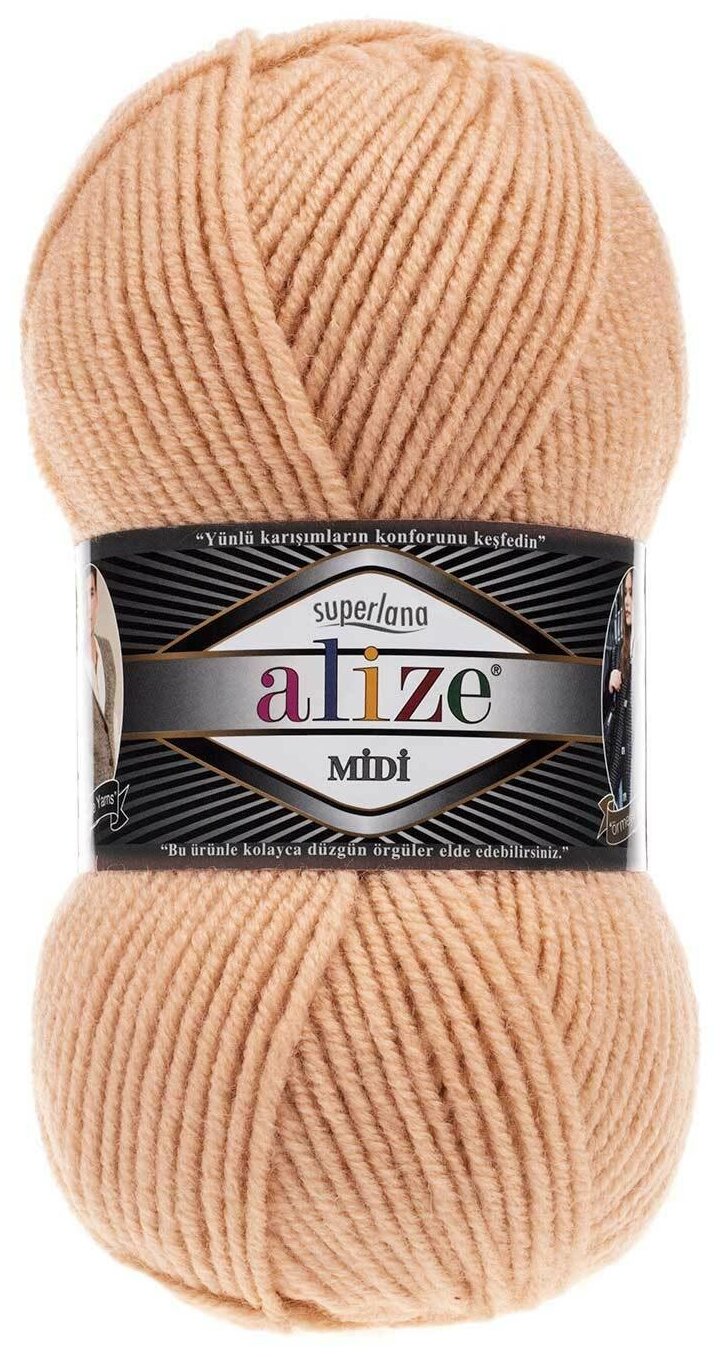 Пряжа Alize Superlana midi (Ализе Суперлана миди) - 2 шт Цвет: 310 шампань, 75% акрил 25% шерсть, 100 г 170 м