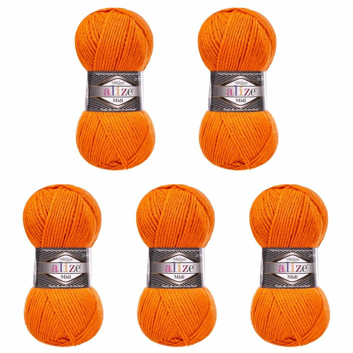 Пряжа для вязания Alize Superlana Midi, цвет 225 оранжевый, 100г, 170м, 5шт/упак