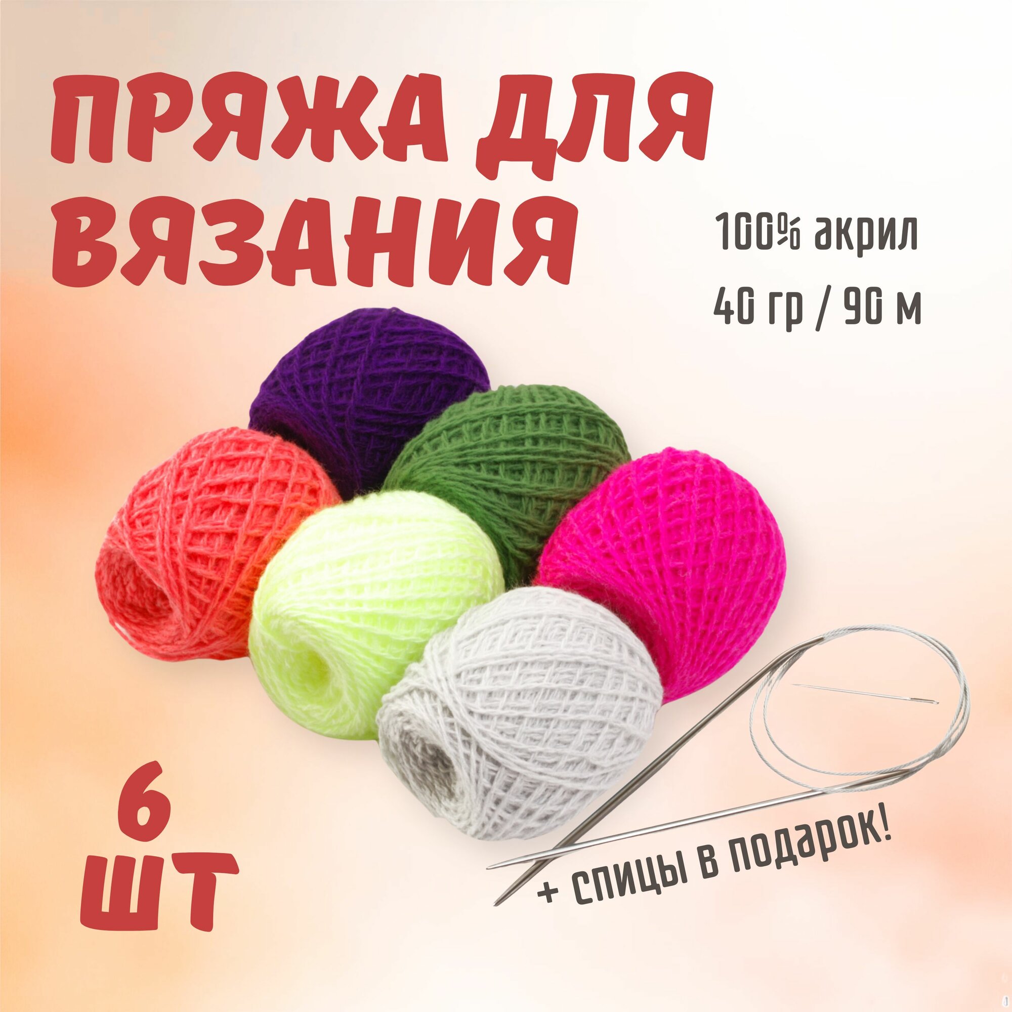 Набор пряжи для вязания ALPIRA №6 (пряжа 6 мотков + спицы круговые) вес 240 грамм