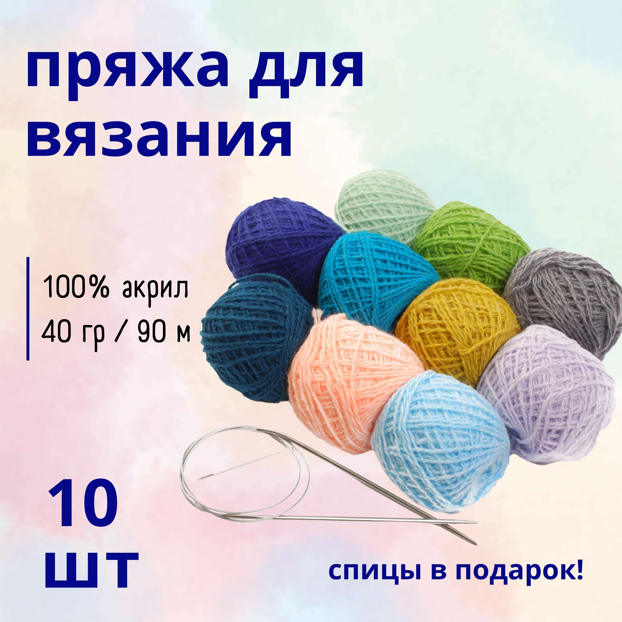 Купить Набор пряжи для вязания ALPIRA №4 (пряжа 100% акрил 10 мотков + спицы для вязания круговые) вес 400 грамм