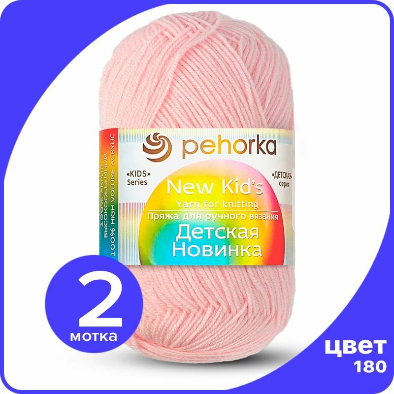 Пряжа Пехорка Детская новинка светлая бегония (180), 100%высокообъемный акрил, 200м, 50г, 2шт
