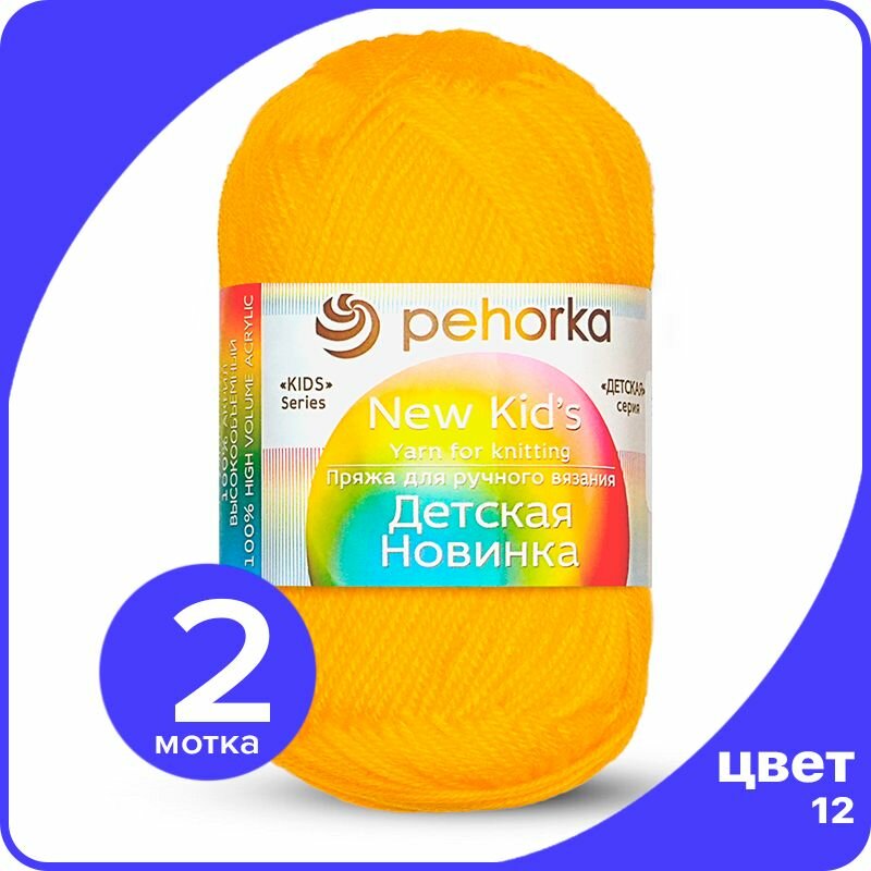 Пряжа Пехорка Детская новинка желток (12), 100%высокообъемный акрил, 200м, 50г, 2шт
