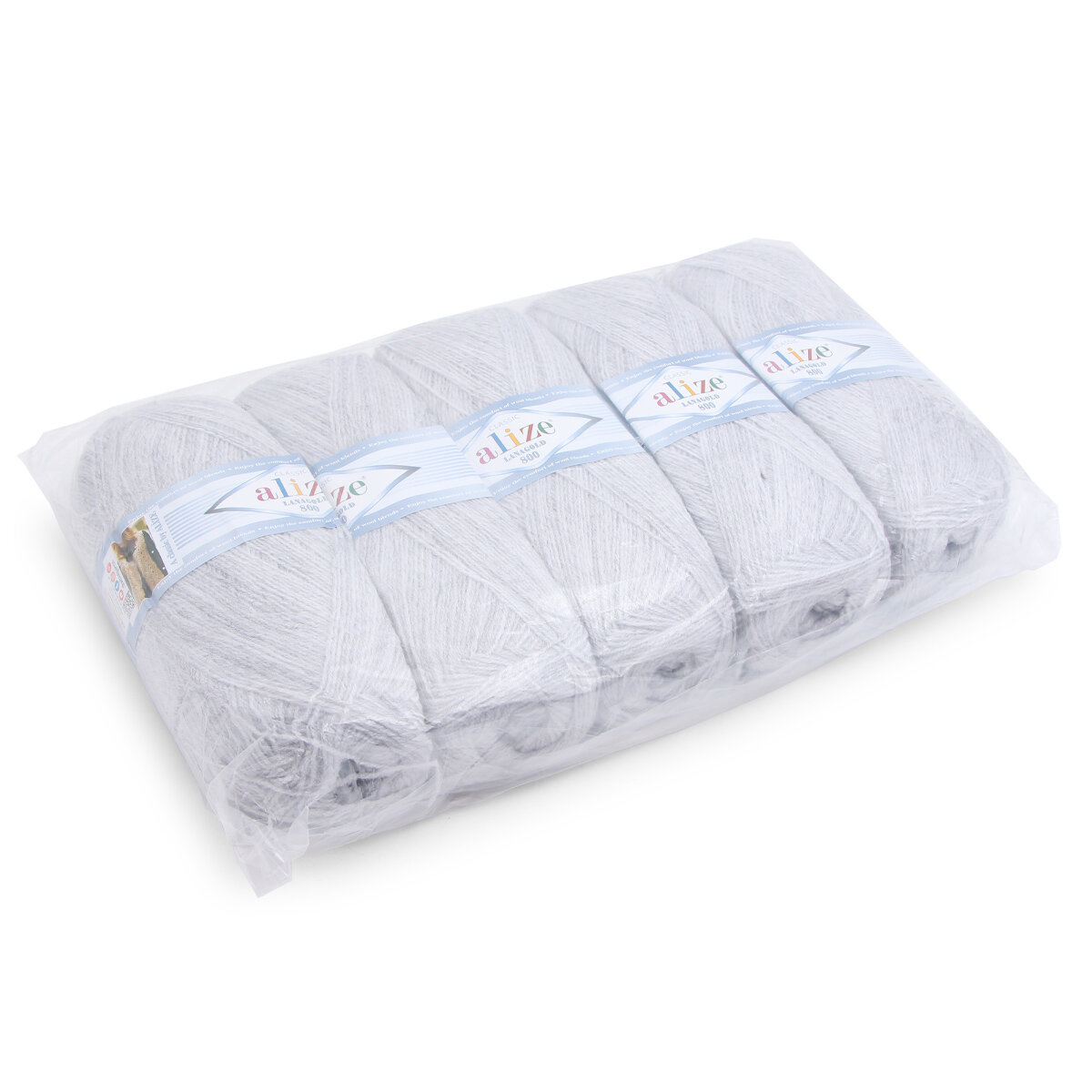 Пряжа Alize Lanagold 800 светло-серый (200), 51%акрил/49%шерсть, 800м, 100г, 5шт