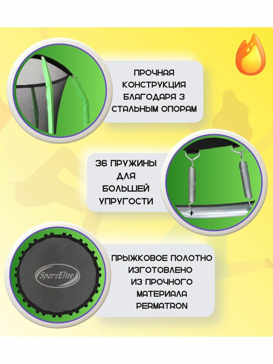 Батут SportElite фиберглас с защитной сеткой внутрь салатовый 6FT
