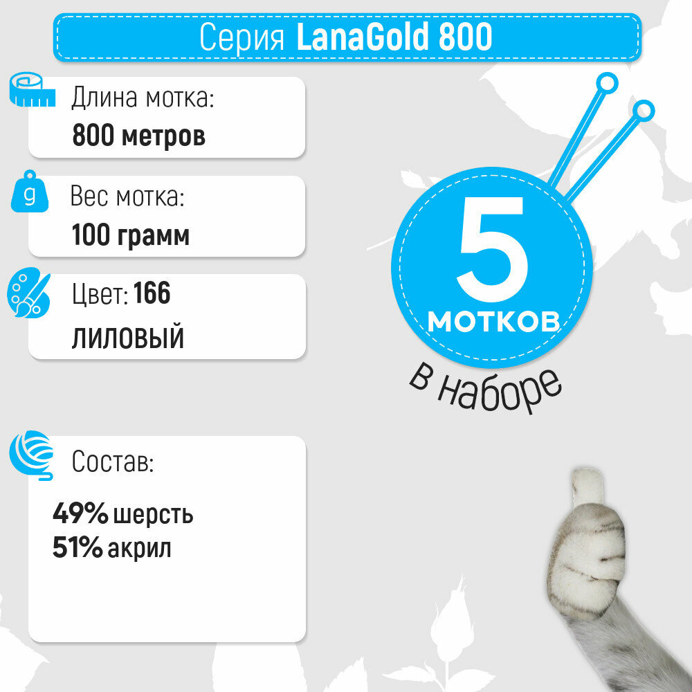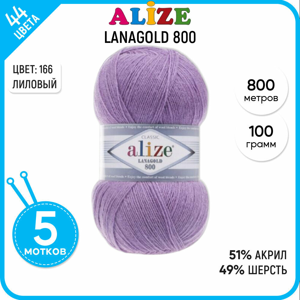 Пряжа Alize Lanagold 800 сиреневый (166), 51%акрил/49%шерсть, 800м, 100г, 5шт
