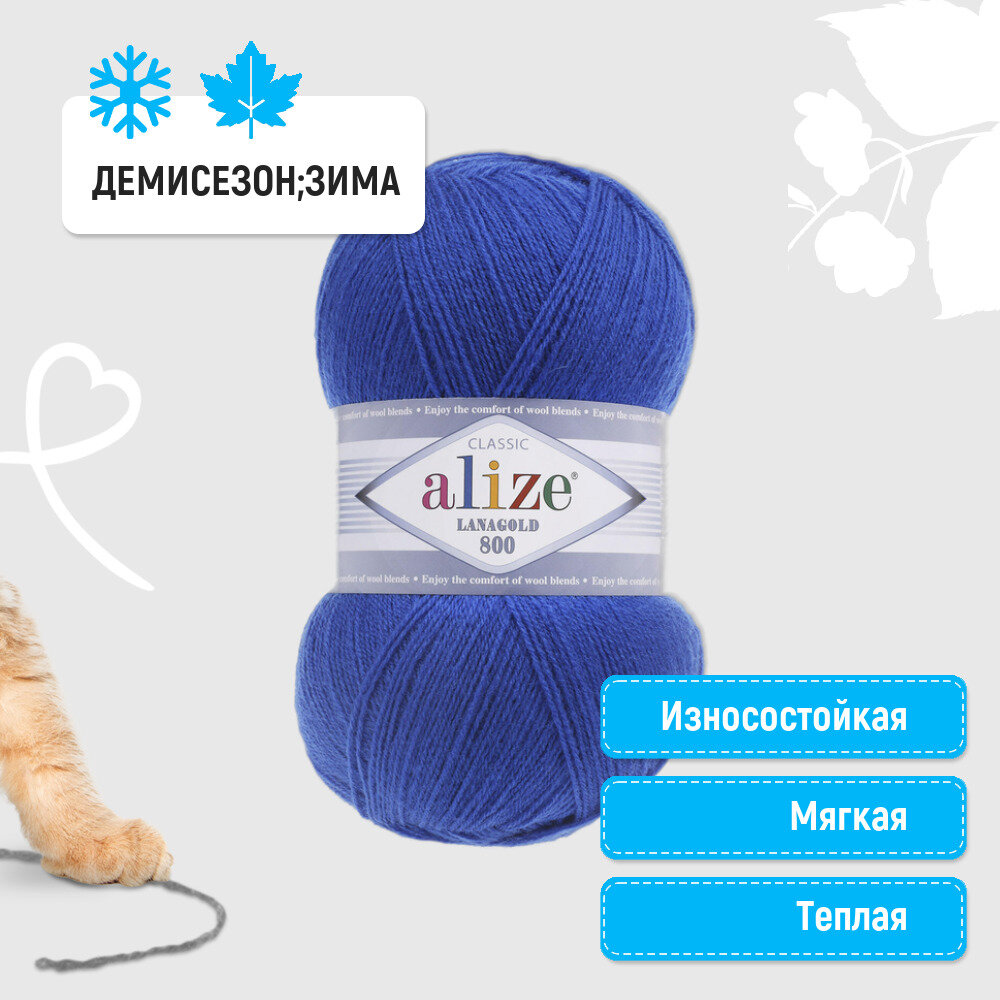 Пряжа Alize Lanagold 800 (Ланаголд 800) - 5 мотков Цвет: 141 василек (Ланаголд 800) 49% шерсть, 51% акрил 100г 730м