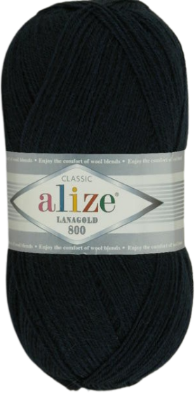 Пряжа Alize Lanagold 800 (Ланаголд 800) - 1 моток Цвет: 60 черный 49% шерсть, 51% акрил 100г 730м
