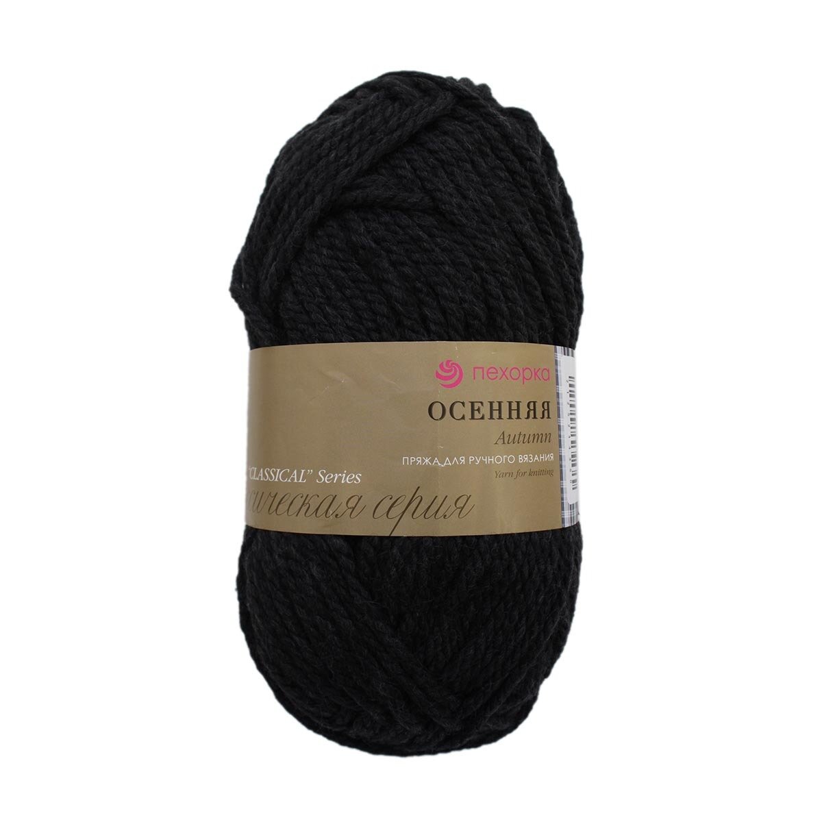 Пряжа Пехорка Осенняя черный (002), 25%шерсть/75%акрил, 150м, 200г, 1шт