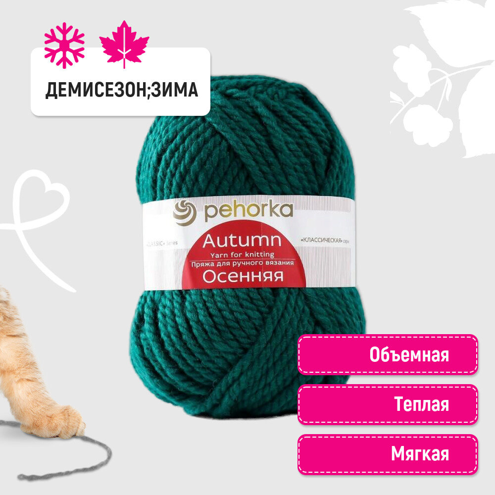 Пряжа Пехорка Осенняя темный изумруд (573), 25%шерсть/75%акрил, 150м, 200г, 1шт