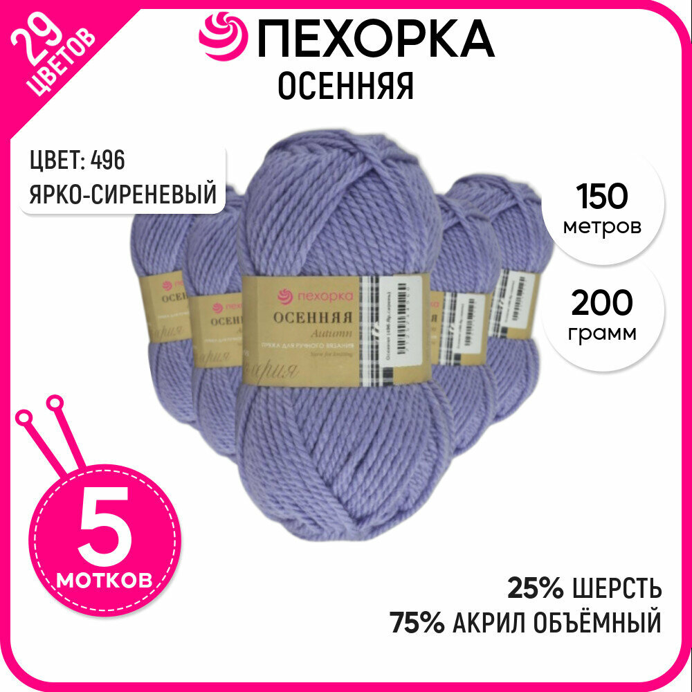 Пряжа Пехорка Осенняя цвет 496 яркая сирень (200г/150м, упаковка 5 мотков)