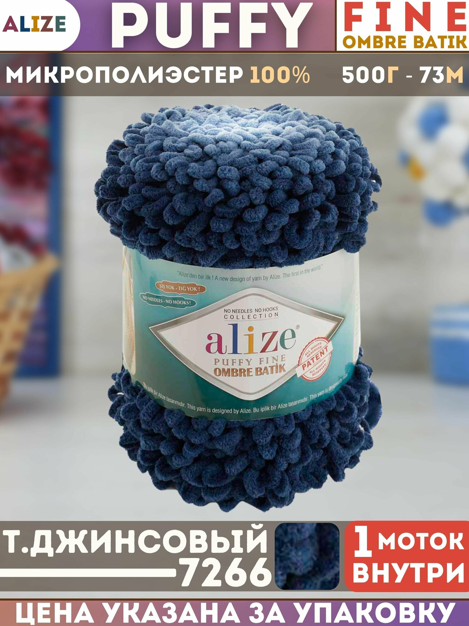 Купить Пряжа Alize Puffy fine ombre batik черника (7266), 100%микрополиэстер, 73м, 500г, 1шт