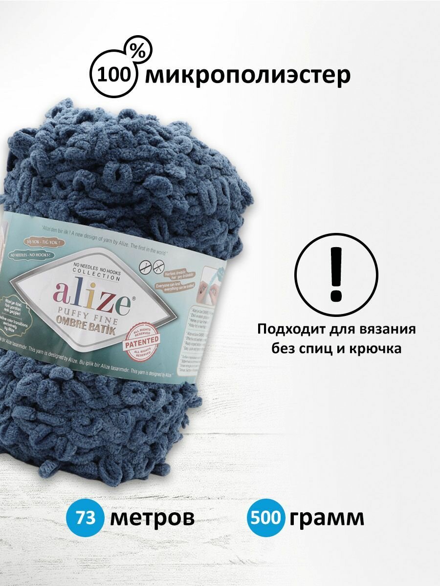 Пряжа для вязания Alize Puffy Fine Ombre Batik 7280, 500 г, 73 м, 1 штука