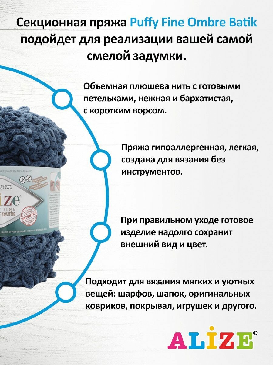 СохранитьПряжа Alize Puffy fine ombre batik черника (7266), 100%микрополиэстер, 73м, 500г, 1шт интересное: