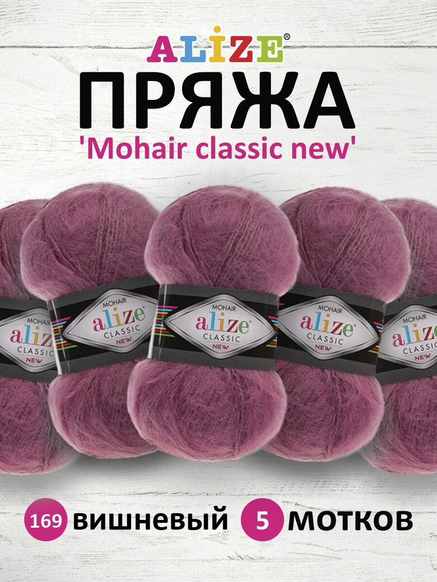 Пряжа для вязания ALIZE 'Mohair classic new', 100г, 200м (25% мохер, 24% шерсть, 51% акрил) (169 вишневый), 5 мотков