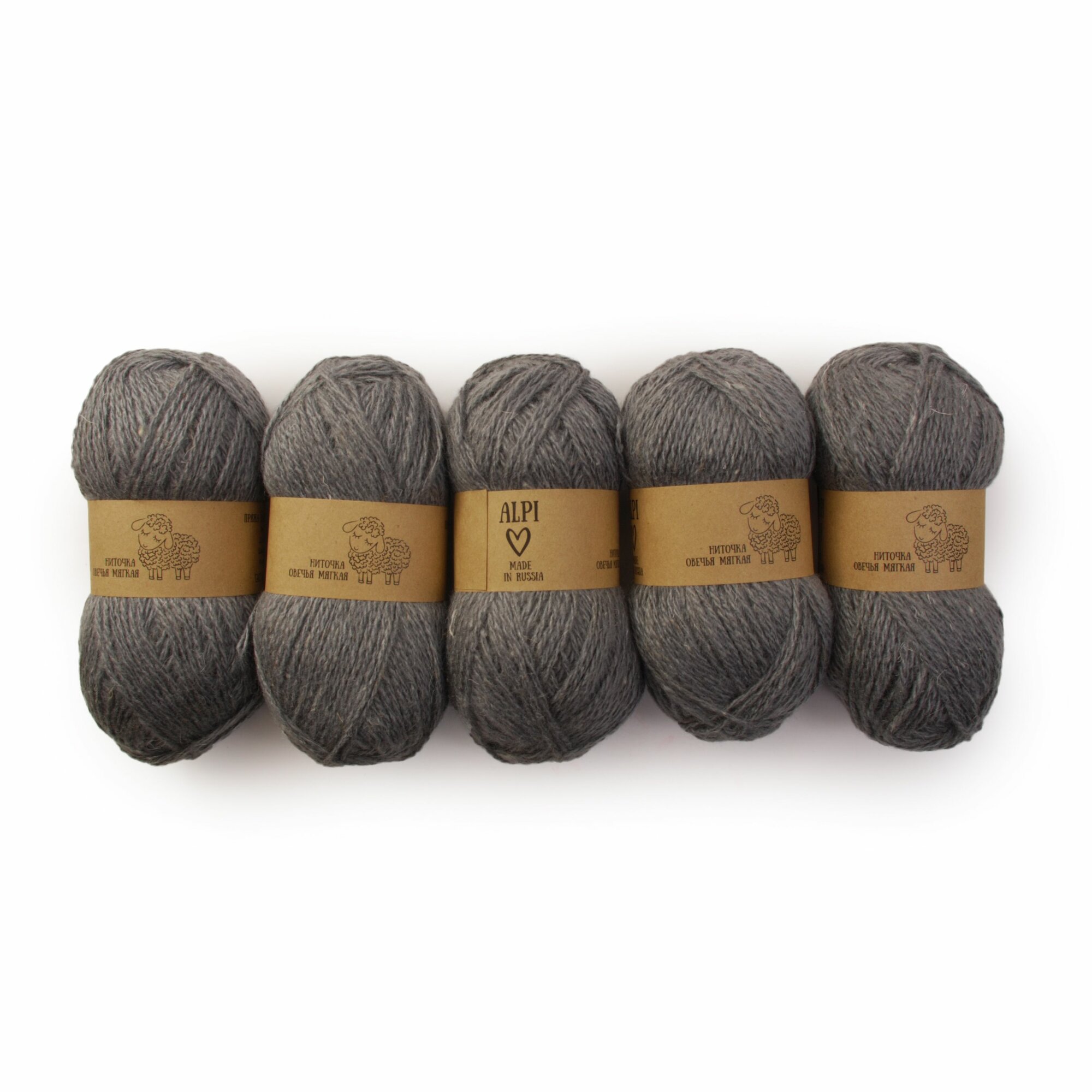 Пряжа для вязания ALPIRA "Овечья мягкая", 70% шерсть, 30% акрил, 100 г/250 м, серый, 5 мотков