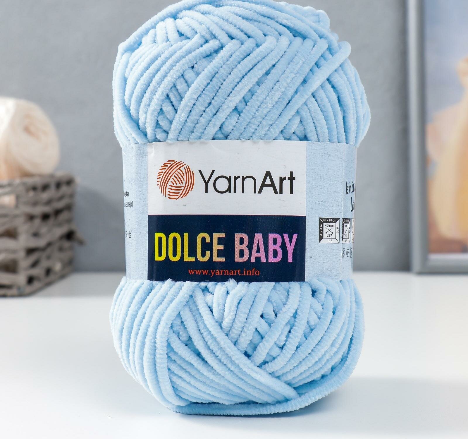 Плюшевая пряжа YarnArt Dolce (Дольче) - 1 моток 777 голубой, для вязания игрушек, 100% микрополиэстер 120м/100г