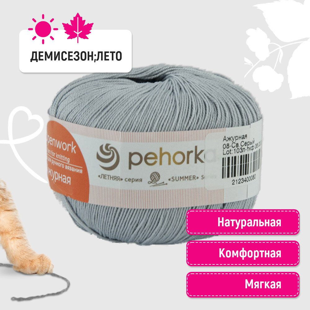 СохранитьПряжа для вязания Пехорка "Ажурная" 10 шт, Светло-серый №08 интересное:
