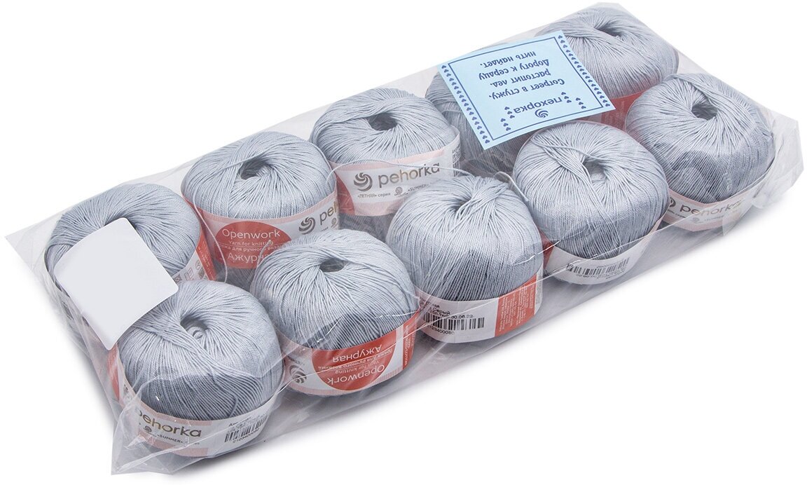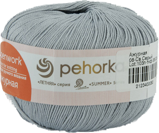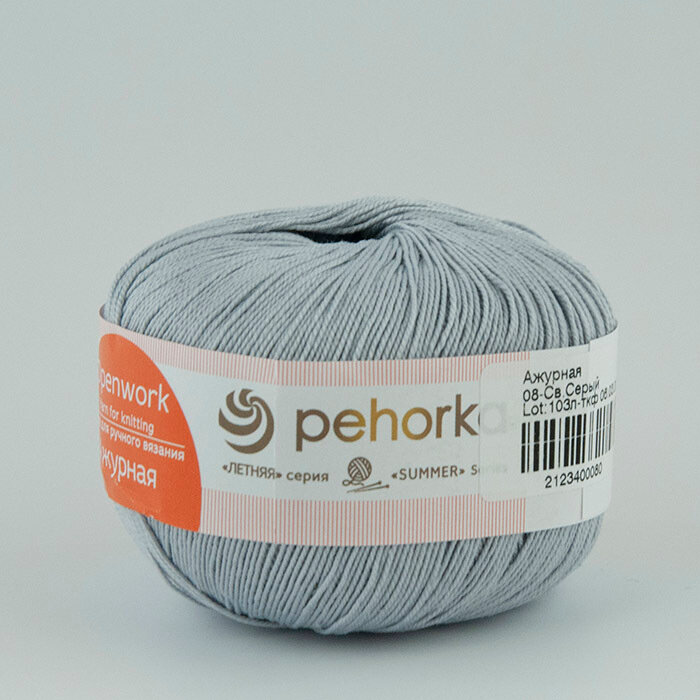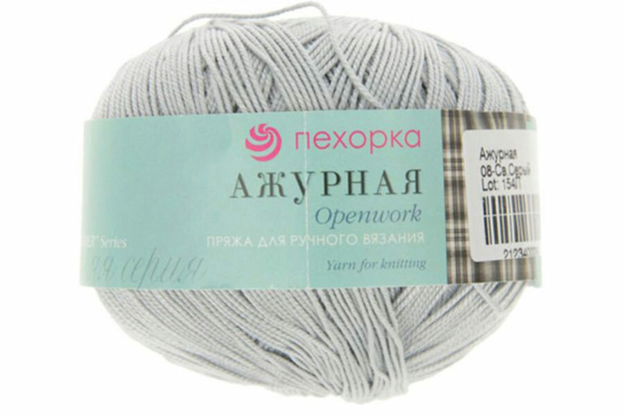 Пряжа 10 шт Пехорка "Ажурная" светло-серый (08)