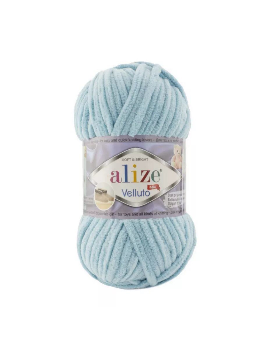 Пряжа для вязания плюшевая Alize Velluto, цвет 218 светло-голубой, 100г, 68м, 5шт/упак