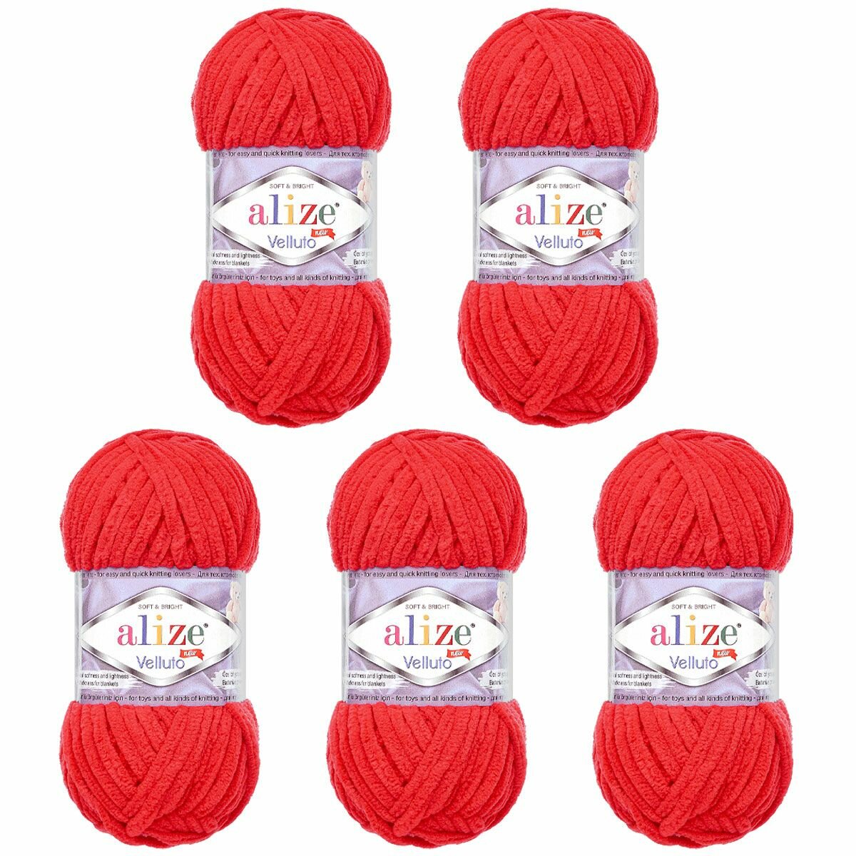 Купить Пряжа Alize Velluto красный (56), 100%микрополиэстер, 68м, 100г, 5шт