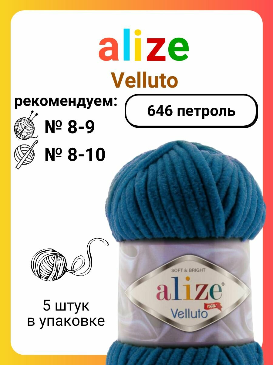 Купить Пряжа Alize Velluto петроль (646), 100%микрополиэстер, 68м, 100г, 5шт