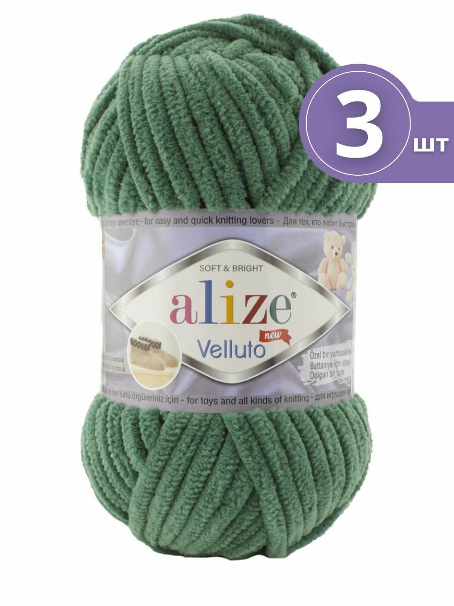 Купить Пряжа Alize Velluto (Ализе Веллюто) - 3 мотка Цвет: 532 зеленая трава 100% микрополиэстер 68м/100г