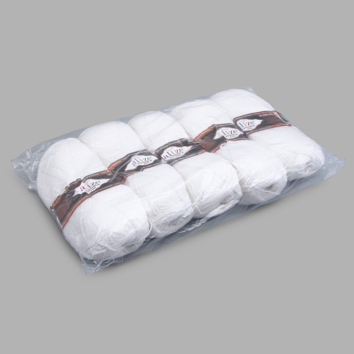 Пряжа Alize Lanagold Fine (Ализе Ланаголд Файн) - 5 мотков, 55 белый, 49% шерсть, 51% акрил 390м/100г