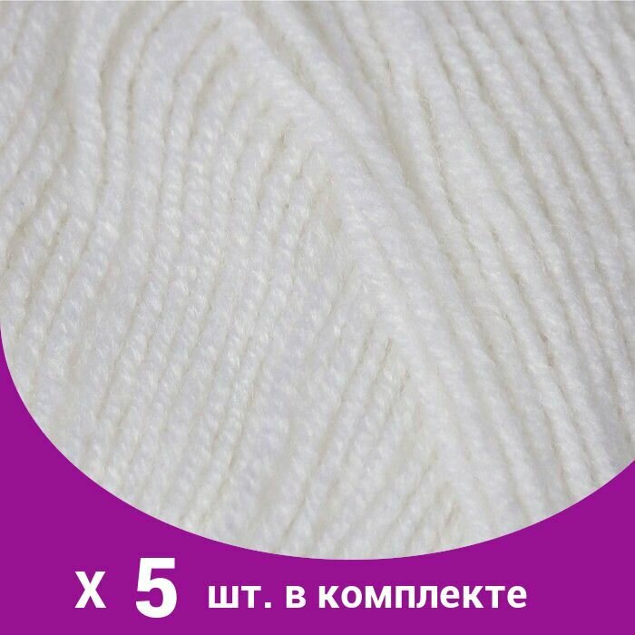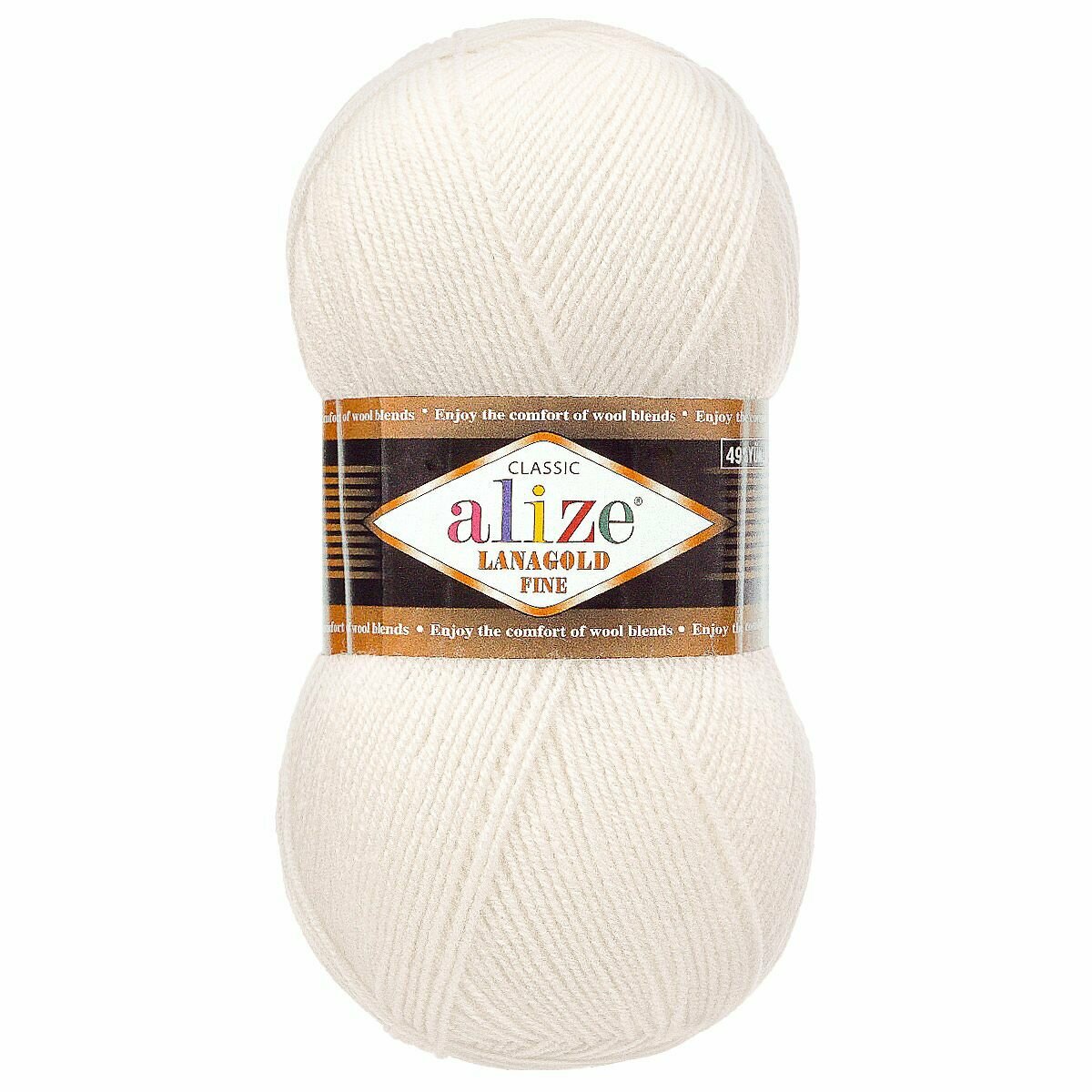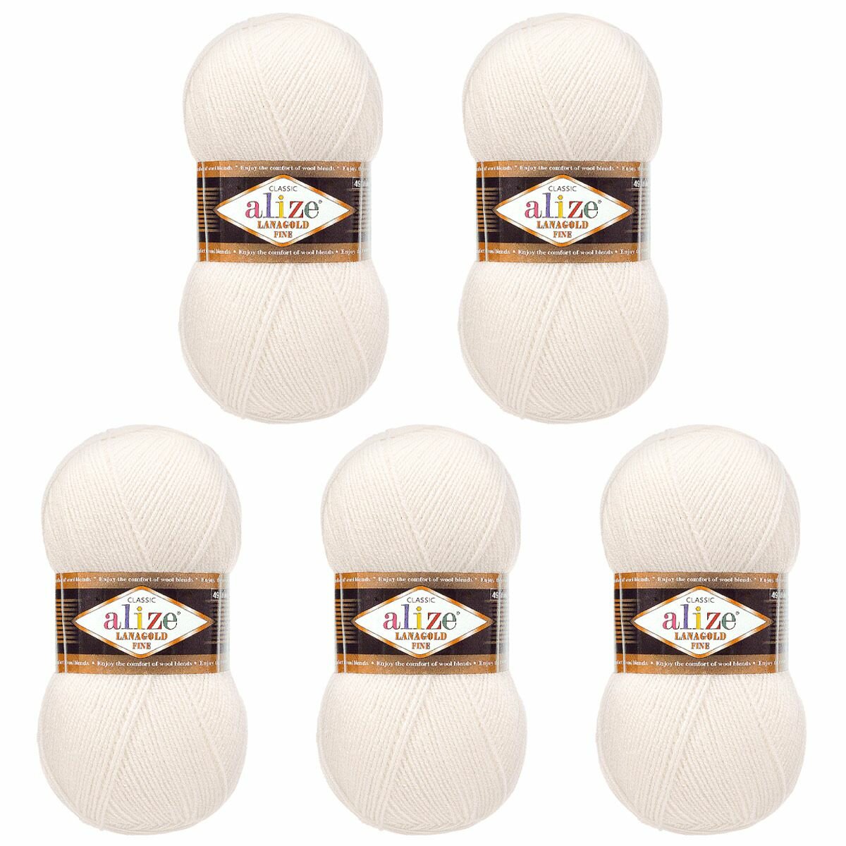 Пряжа Alize Lanagold Fine (Ализе Ланаголд Файн) - 5 мотков, 01 кремовый, 49% шерсть, 51% акрил 390м/100г