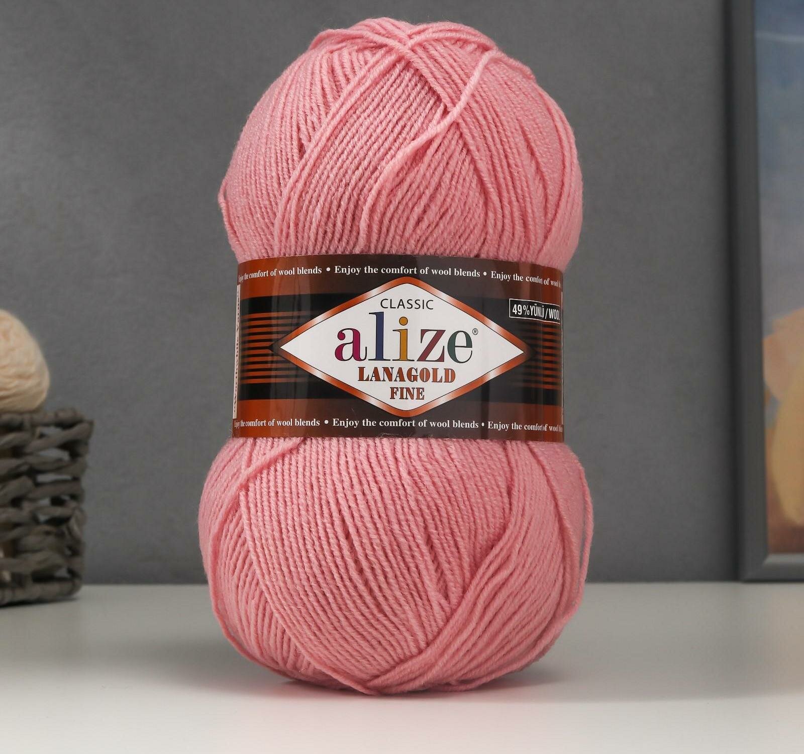 Пряжа Alize Lanagold Fine (Ланаголд Файн) - 1 шт Цвет: 173 увядшая роза 49% шерсть, 51% акрил 100г 390м