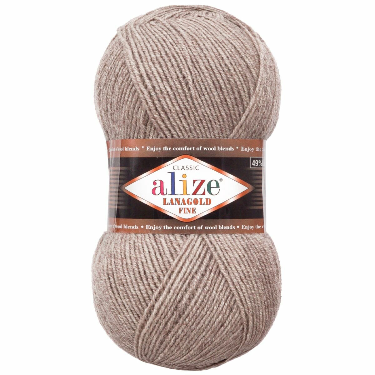 Пряжа для вязания ALIZE LANAGOLD FINE: 207 (светло-коричневый), 3 шт 390 м 100 г, 49% шерсть 51% акрил