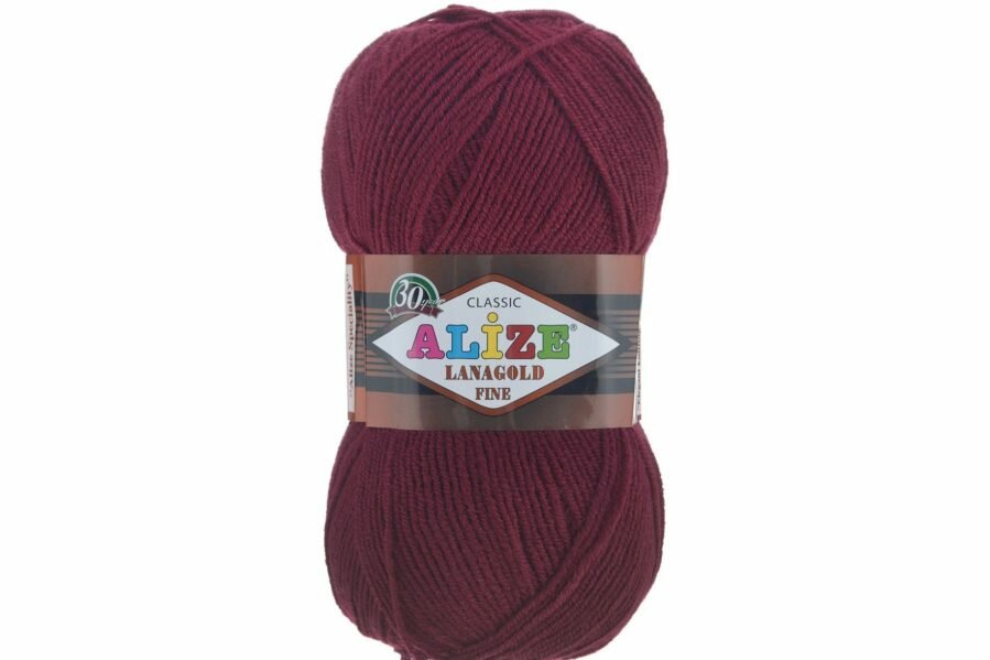 Пряжа Alize Lanagold Fine (Ализе Ланаголд Файн) - 1 моток, 57 бордовый, 49% шерсть, 51% акрил 390м/100г