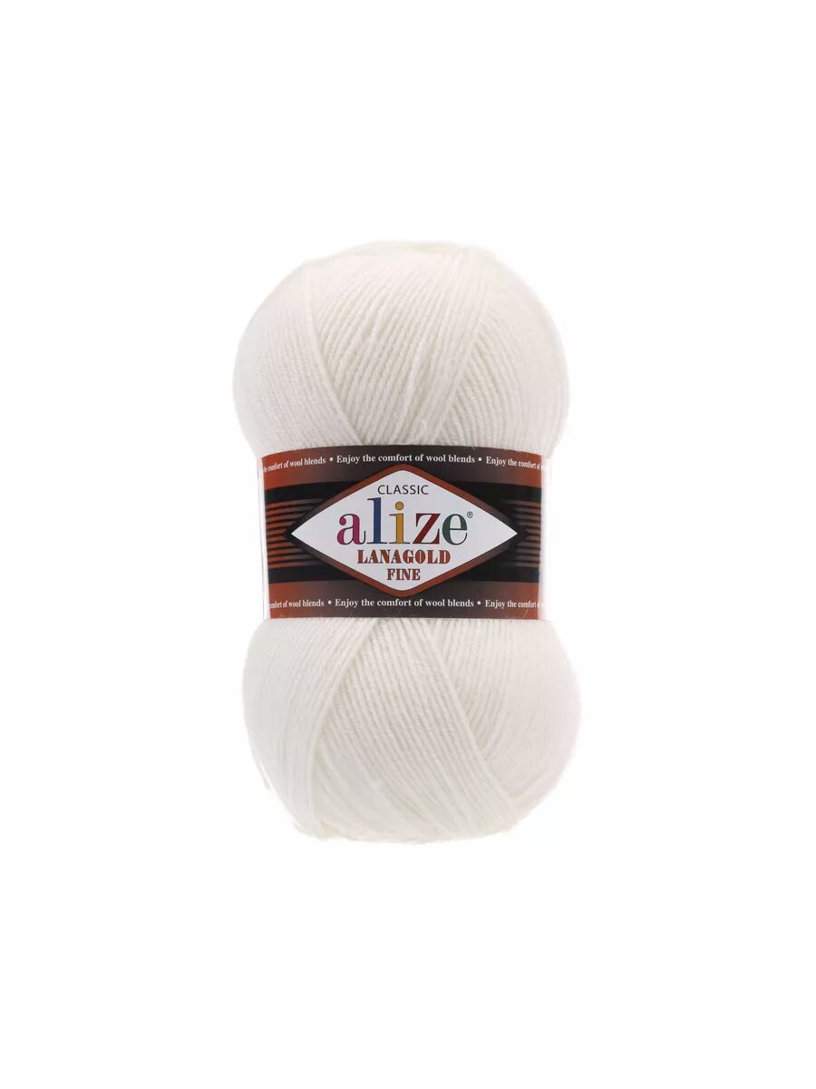 Пряжа Alize Lanagold Fine молочный (62), 51%акрил/49%шерсть, 390м, 100г, 1шт