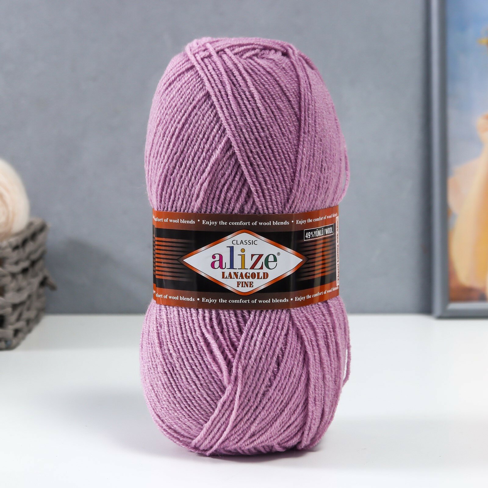 Пряжа для вязания ALIZE LANAGOLD FINE: 505 (пепельно-сиреневый), 3 шт 390 м 100 г, 49% шерсть 51% акрил