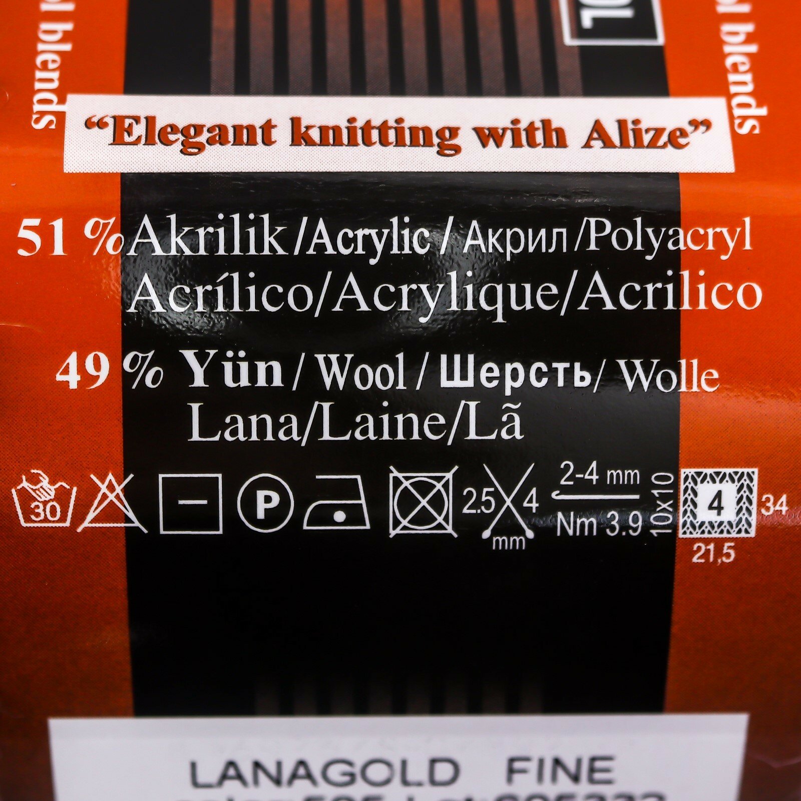 Пряжа Alize Lanagold Fine (Ализе Ланаголд Файн) - 5 мотков, 585 камень, 49% шерсть, 51% акрил 390м/100г