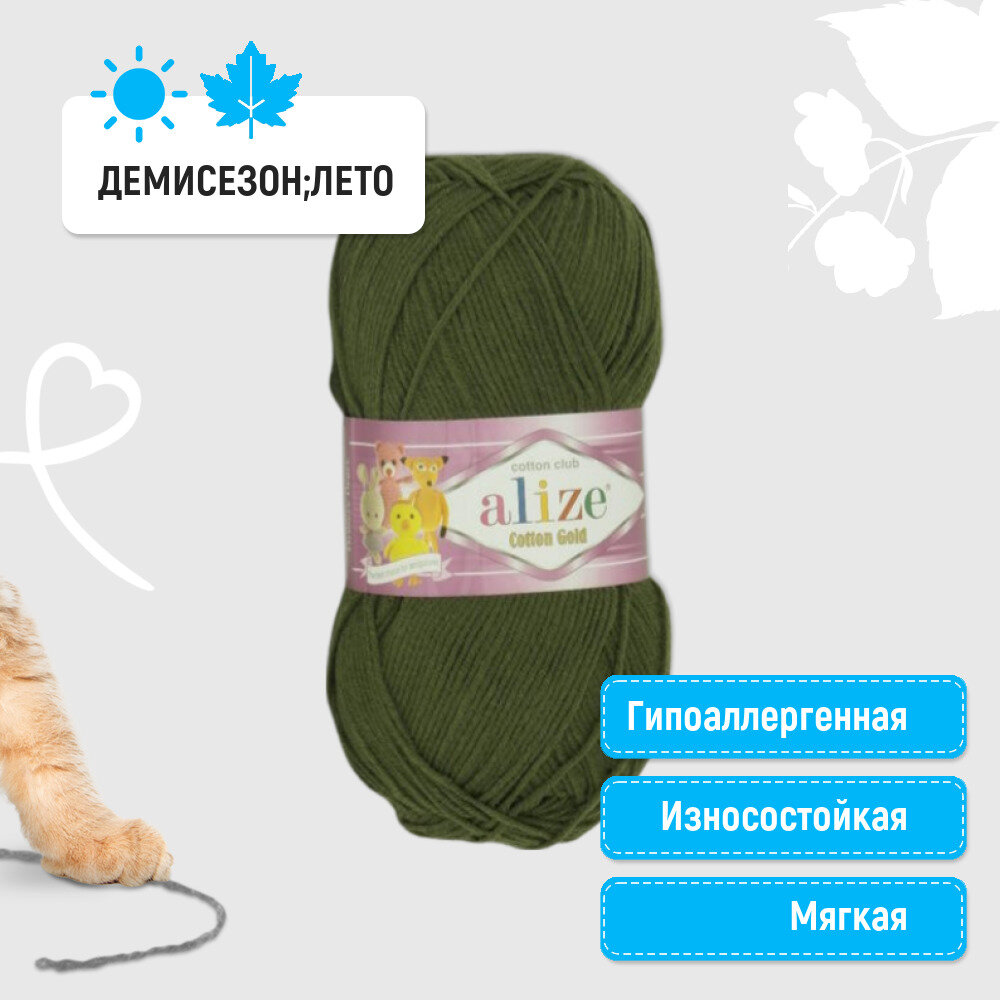 Пряжа Alize Cotton Gold хаки (782), 55%хлопок/45%акрил, 330м, 100г, 3шт
