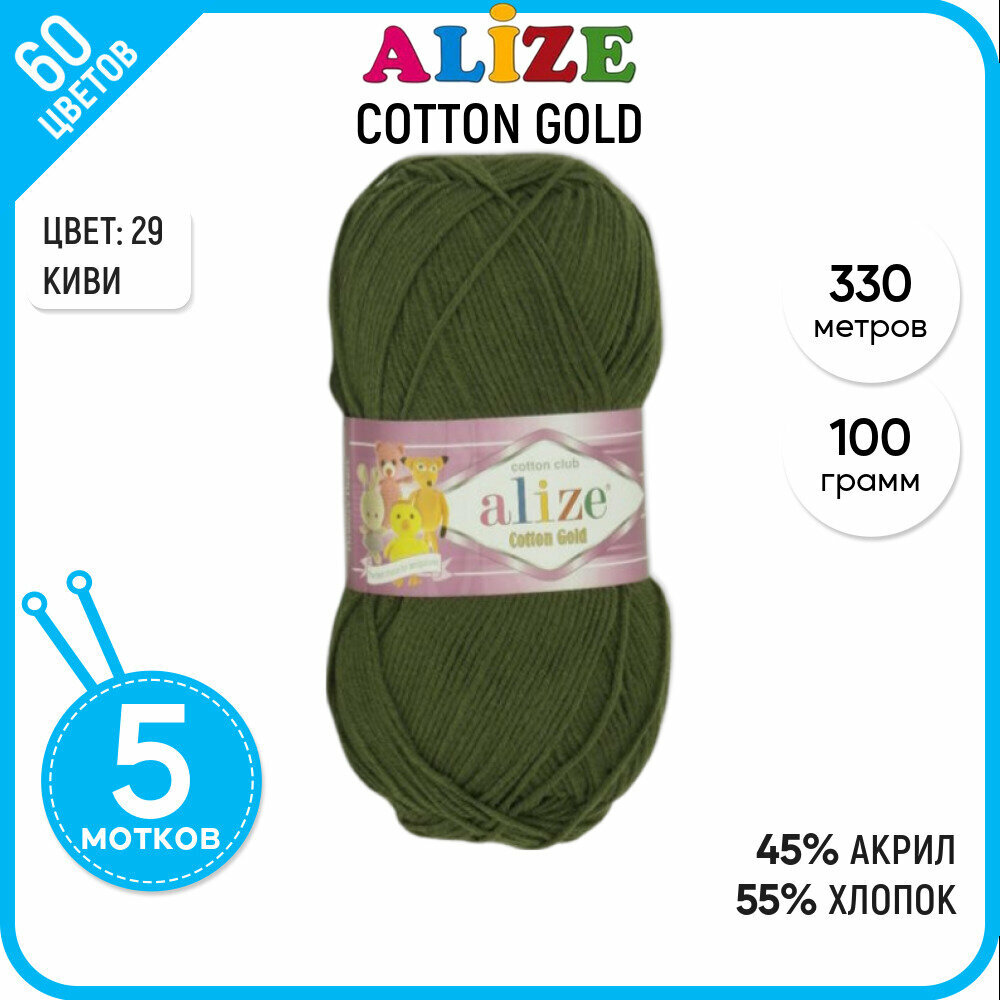 Купить Пряжа Alize Cotton Gold хаки (29), 55%хлопок/45%акрил, 330м, 100г, 5шт