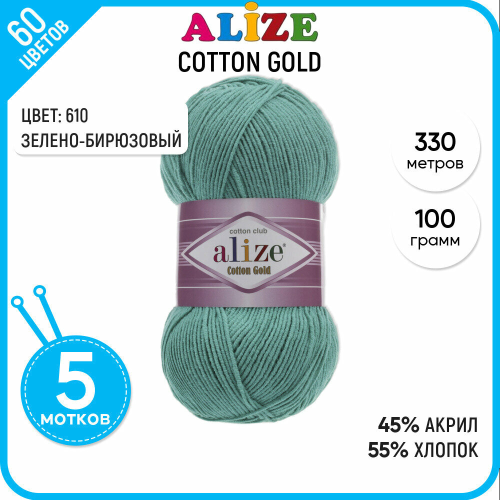 Купить Пряжа Alize Cotton Gold изумруд (610), 55%хлопок/45%акрил, 330м, 100г, 5шт