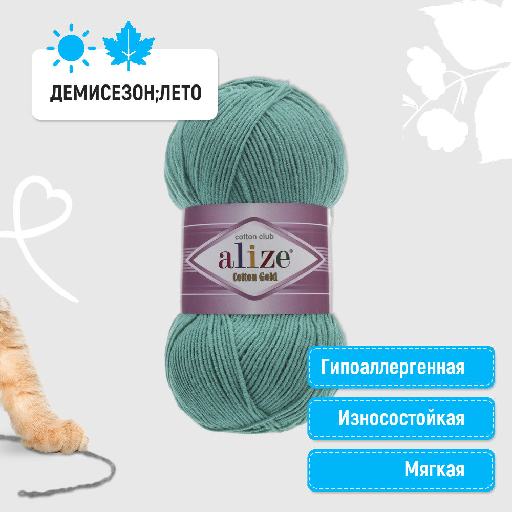 Пряжа Alize Cotton Gold водяная зелень (15), 55%хлопок/45%акрил, 330м, 100г, 1шт