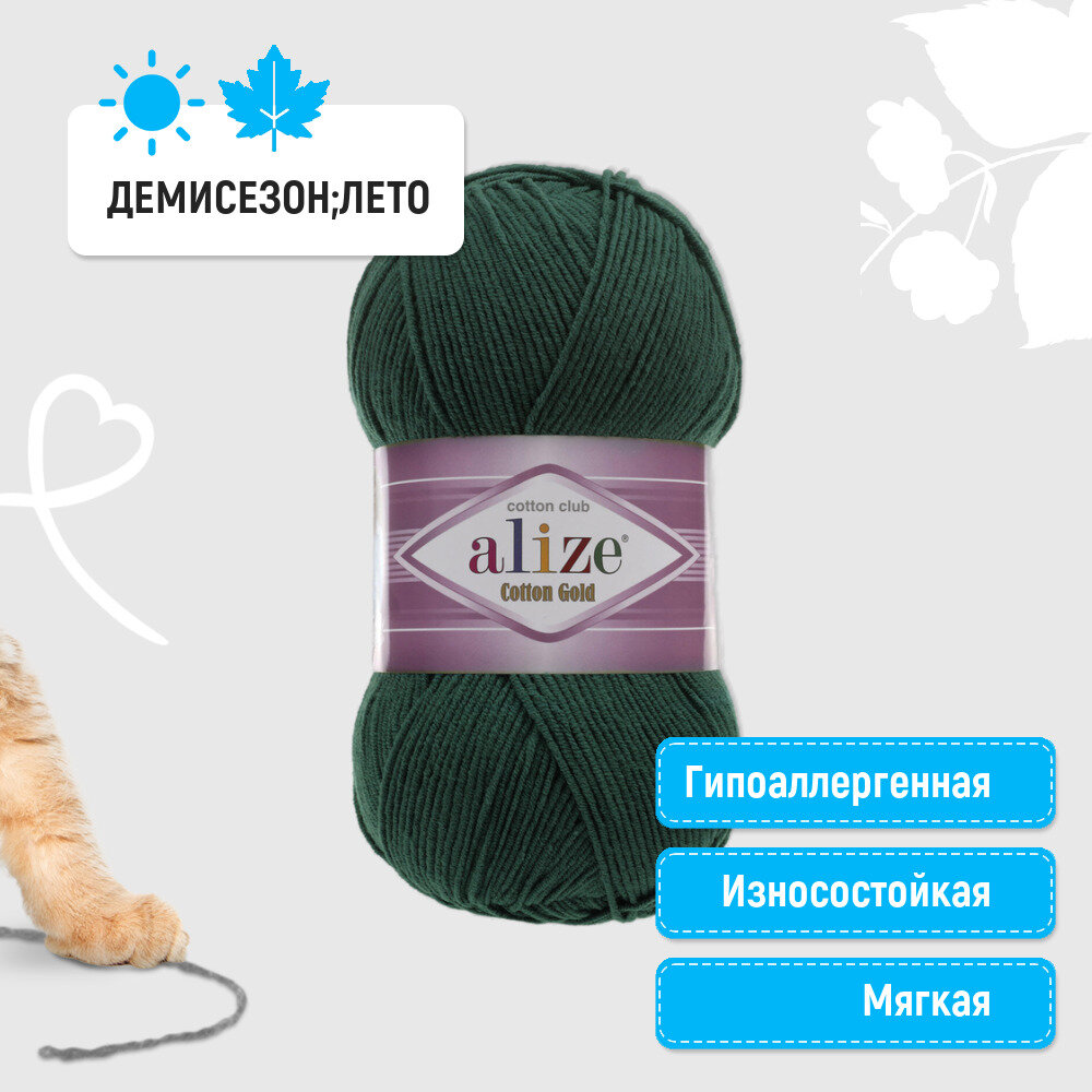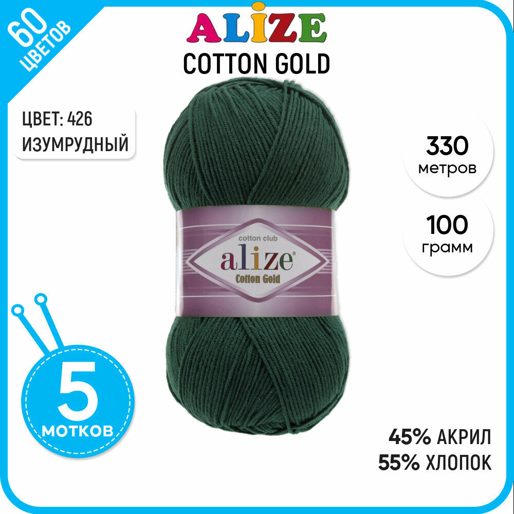 Пряжа для вязания ALIZE 'Cotton gold', 100г, 330м (55% хлопок, 45% акрил), ТУ (485 зеленый), 5 мотков