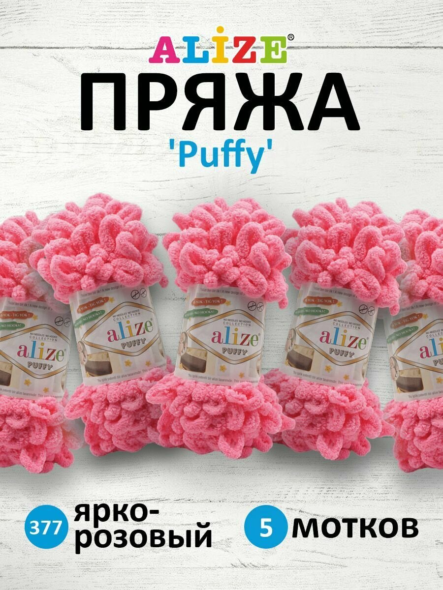 Купить Пряжа Alize Puffy ярко-розовый (377), 100%микрополиэстер, 9м, 100г, 5шт