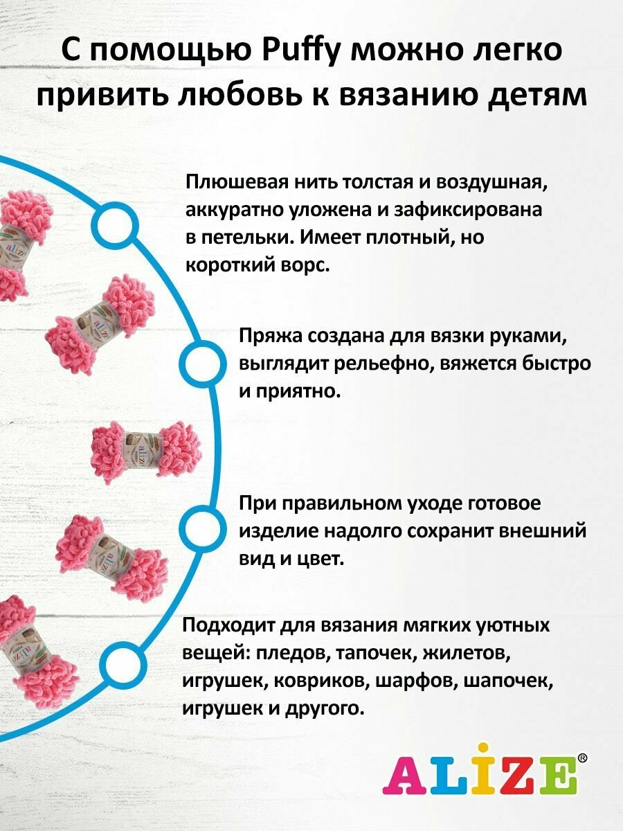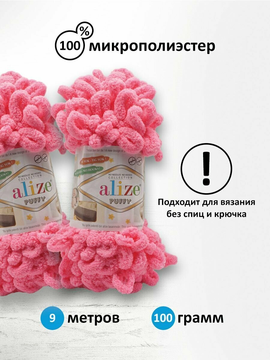 Пряжа для вязания ALIZE Puffy Ализе Пуффи: 185 (розовый), 5 шт 9 м 100 г, 100% микрополиэстер, большие петли