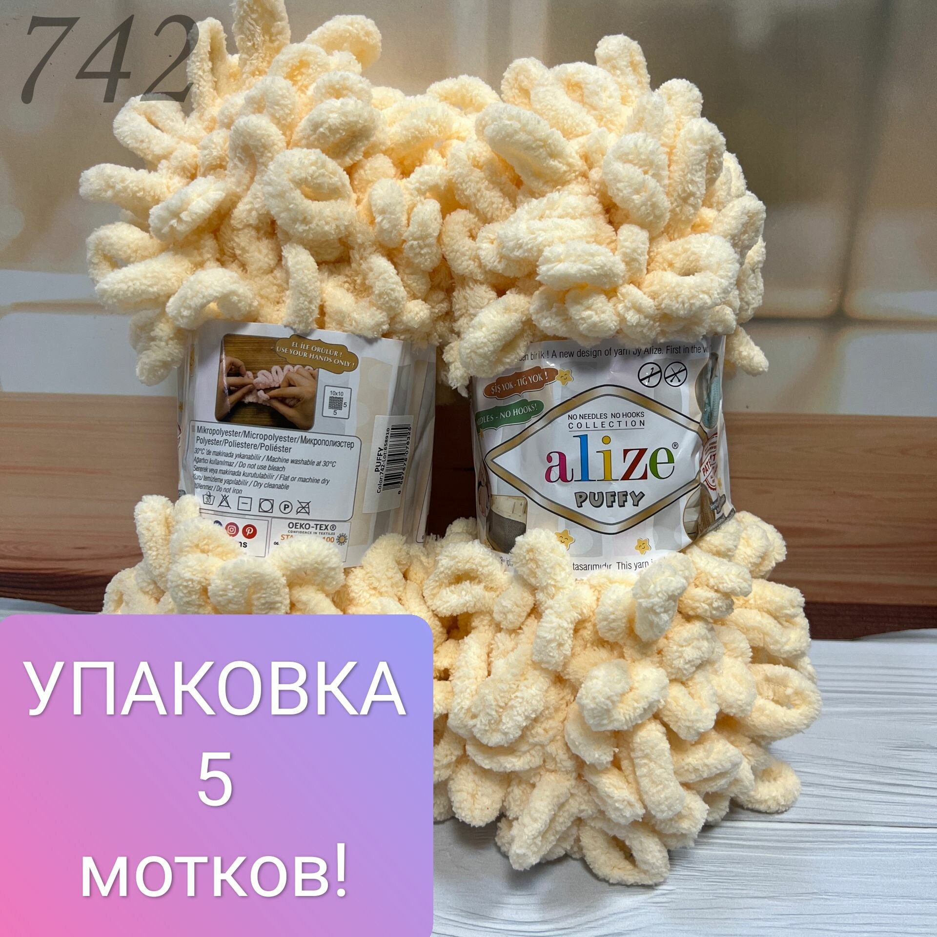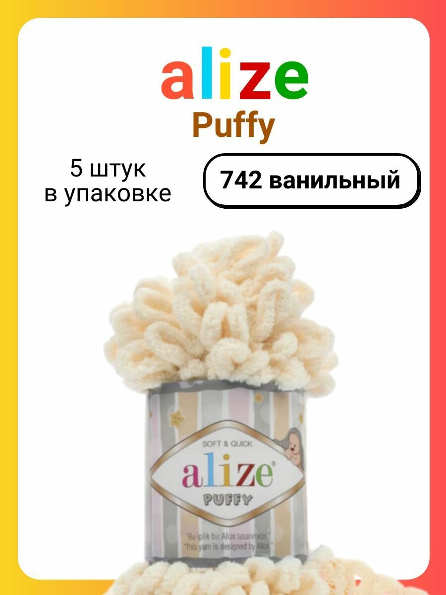 Пряжа для вязания ALIZE Puffy Ализе Пуффи: 742 (ванильный), 3 шт 9 м 100 г, 100% микрополиэстер, большие петли
