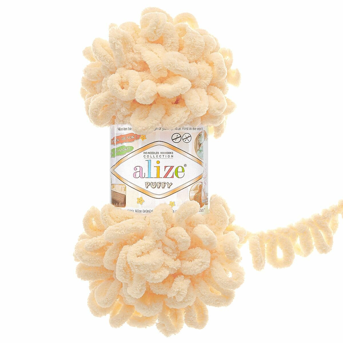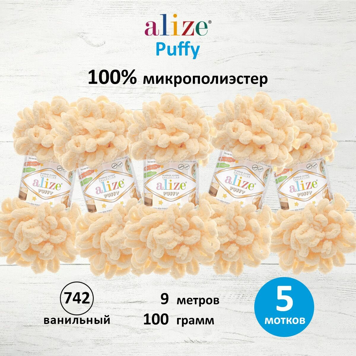 Купить Пряжа плюшевая Alize Puffy (Ализе Пуффи) - 5 мотков 742 Ванильный для вязания руками, гипоаллергенная, большие петли (4см), 9м/100г