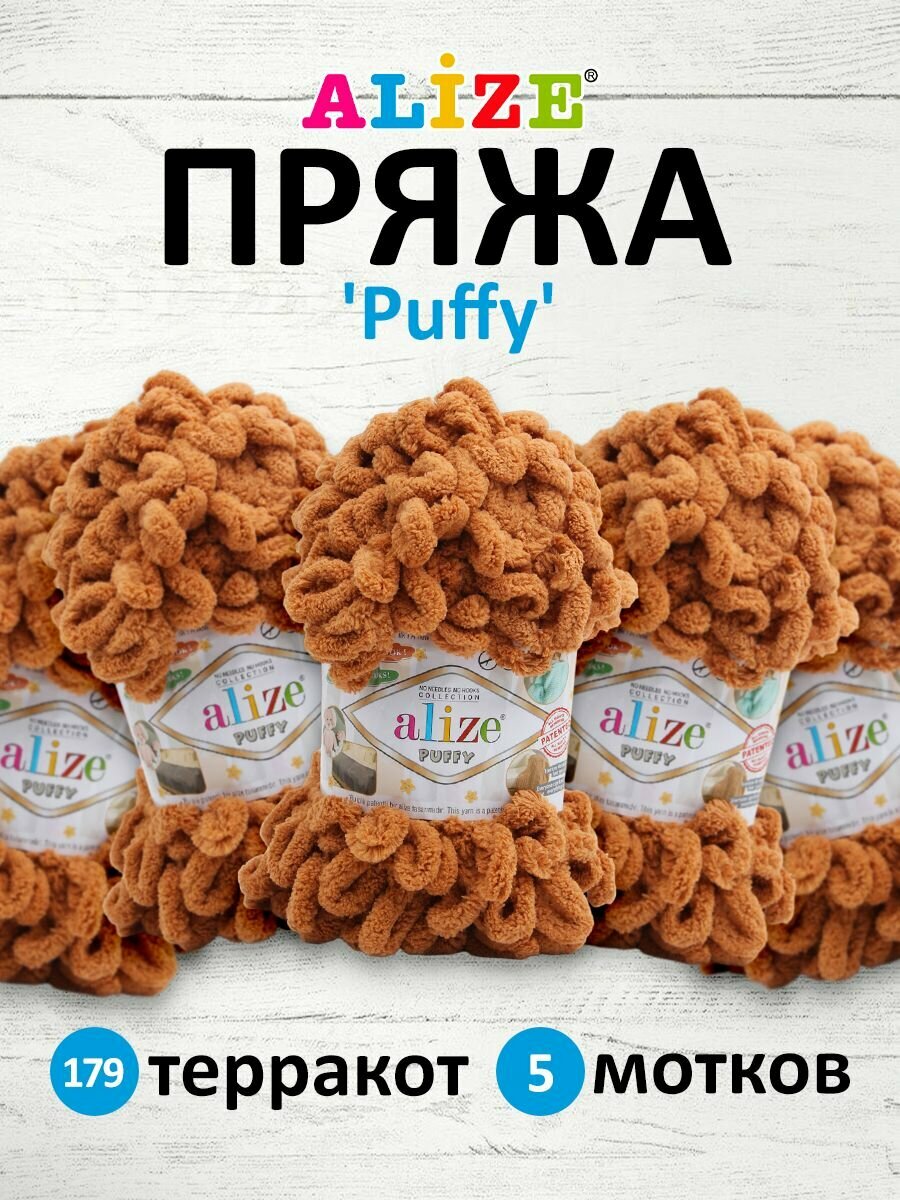 Купить Пряжа Alize Puffy терракот (179), 100%микрополиэстер, 9м, 100г, 5шт