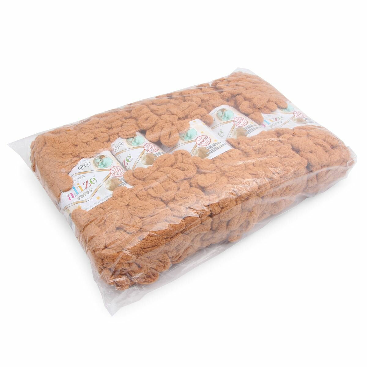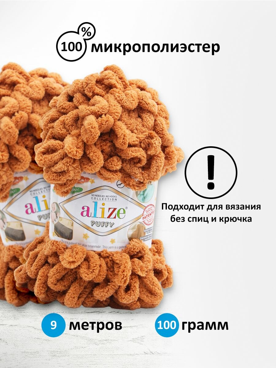 Пряжа плюшевая Alize Puffy (Ализе Пуффи) - 5 мотков 597 корица для вязания руками, гипоаллергенная, большие петли (4см), 9м/100г