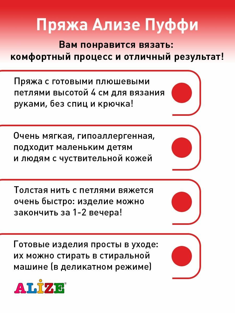 Пряжа Puffy Alize (006), 100г, 9м, 100% микрополиэстер (2 шт.)