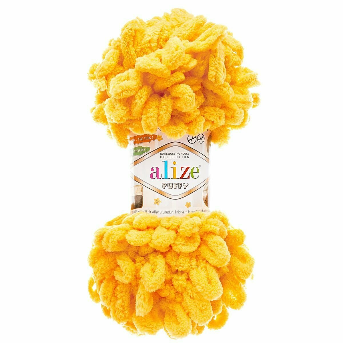 Купить Пряжа для вязания руками с готовыми петлями ALIZE 'Puffy' 100г, 9м (216 желтый), 5 мотков