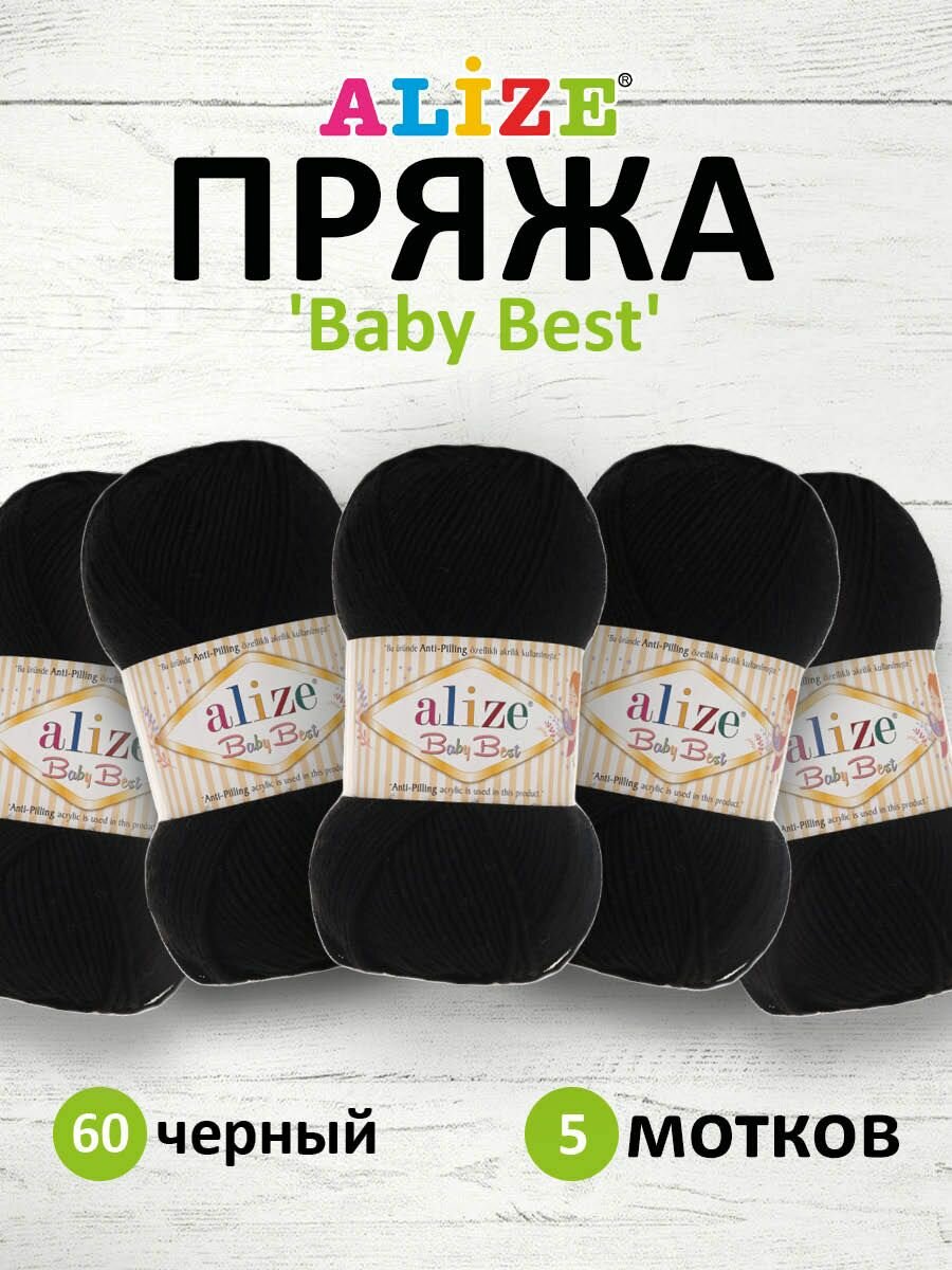 Купить Пряжа Alize Baby best черный (60), 90%акрил/10%бамбук, 240м, 100г, 5шт