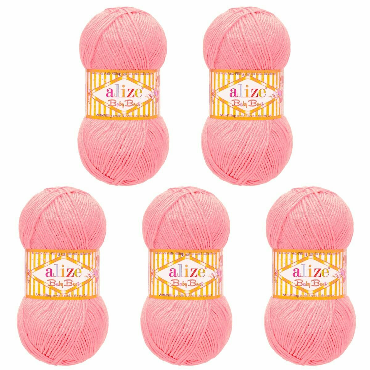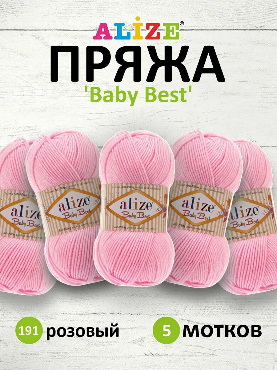 Пряжа ALIZE "Baby Best", 100 г 240 м, 10% бамбук, 90% акрил, с эффектом антипиллинг, 191 розовый, 5 шт